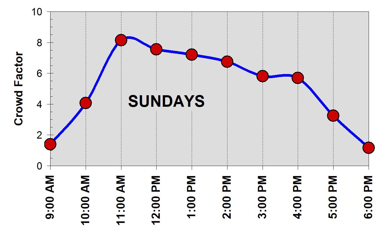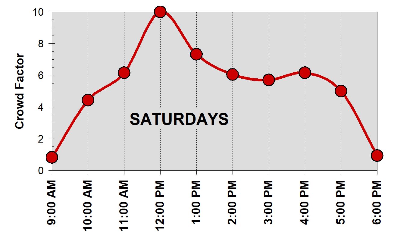 Plan Ahead – Avoid The Crowds Busiest Day Of The Season Late PM is good Early AM is better Before 10 am After 2 pm Weekdays Relax & Enjoy !